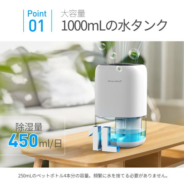 ペルチェ素子で吸い込んだ湿気を冷却や結露する革新ペルチェ技術で1日中最大450mlの水を除去できます