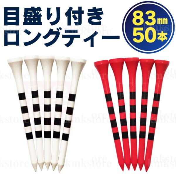 ゴルフ ティー ロング 50本 83mm バンブーティー ウッド アイアン ティ 竹 目盛り 白 赤 ホワイト レッド
