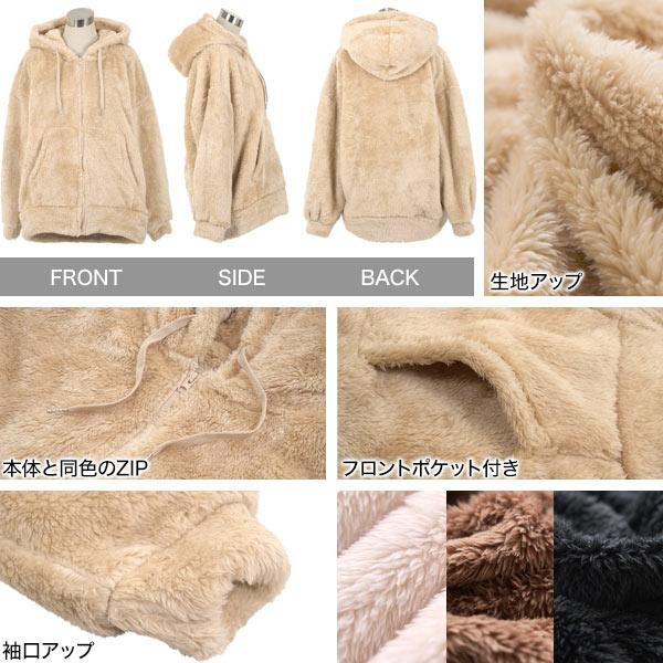 ファーフリースジップアップフーディー アウター レディース 40代 50代 羽織り ブルゾン K1383送料無料