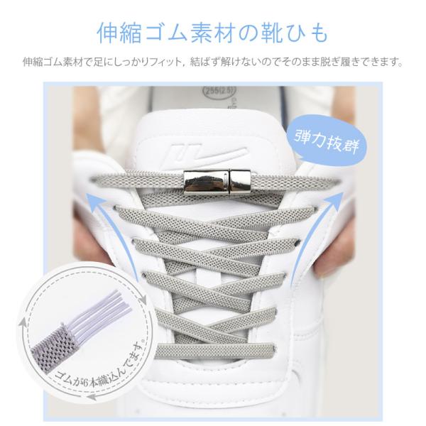 結ばない 靴ひも 140CM 幅8mm ゴム 靴紐 マグネット 磁石 フィット くつひも シューレーススニーカー 伸縮性高