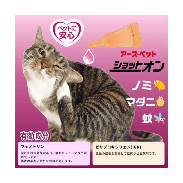 猫 ノミ マダニ 蚊 駆除 猫ダニ 猫 ノミ取り薬 耳ダニ 虫ケア ペットを守る 安心 スポット剤 アースペット 薬用ショットオン 猫用 3本入×2箱