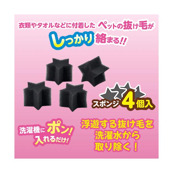 猫 抜け毛 ペット 犬 集毛 スポンジ 絡めとる 洗濯機 入れるだけ 洗濯 衣類 タオル 付着した毛 星形 しっかり集毛スポンジ 4個入り 洗濯用