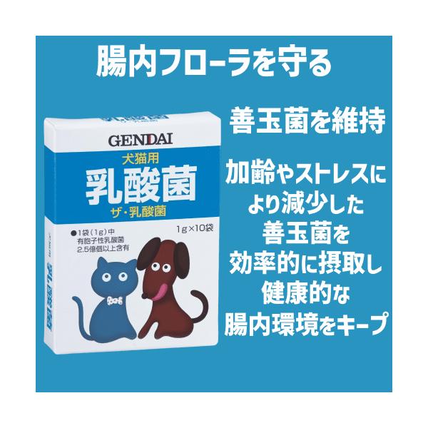 猫 乳酸菌 サプリ 乳酸菌 猫 腸まで届く 善玉菌 オリゴ糖 腸活 腸内フローラ 免疫力アップ 現代製薬 犬猫用乳酸菌 ザ・乳酸菌 1g×10袋×3箱