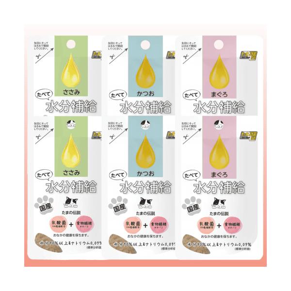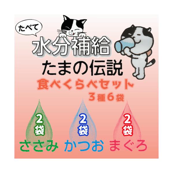 たまの伝説 パウチ お試し 2袋3種アソート かつお まぐろ ささみ 猫 水分補給 脱水症状 熱中症 たまの伝説 たべて水分補給 食べくらべ6袋セット