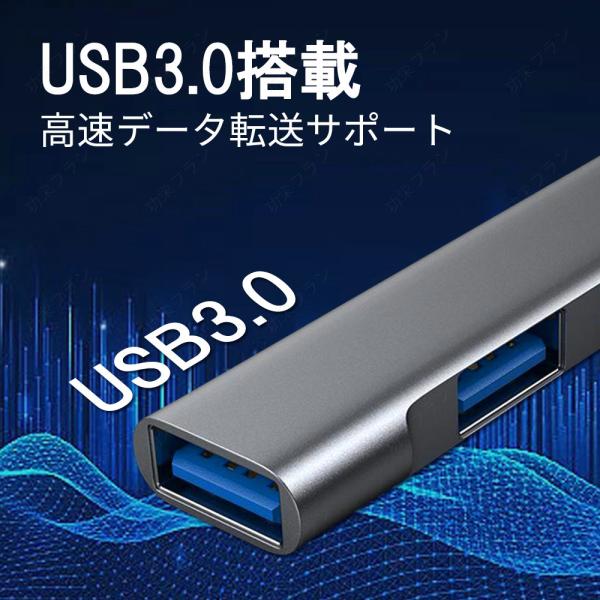 USBハブ 3.0 4ポート USB拡張 薄型 軽量設計 usbポート type-c 接続 USB 接続 コンパクト 4in1 3.0搭載 高速 Macbook Windows ノートPC