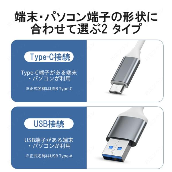 二つ接続タイプUSB接続とType-C接続を選べる。