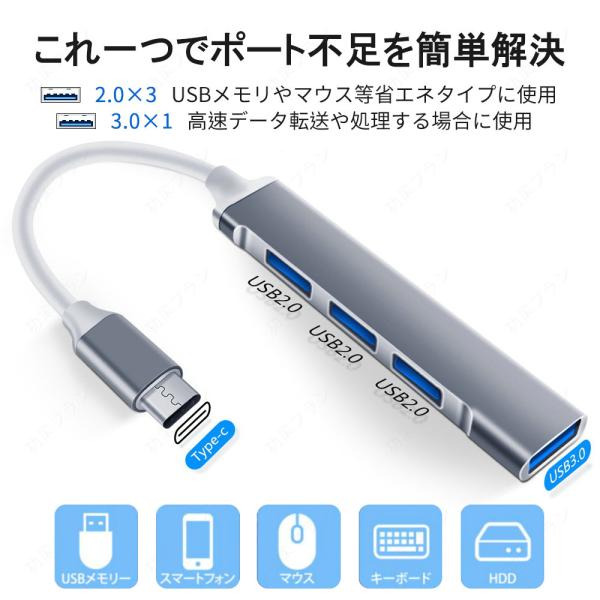 USBハブ 3.0 4ポート USB拡張 usbポート type-c 接続 usb充電