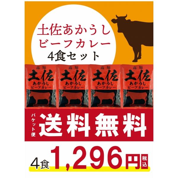 土佐あかうビーフカレー 160g×4袋 送料無料 高知が誇る自慢の「土佐あかうし」を100%使った、贅沢カレー ゆうパケット送料無料 |レトルト カレー 甘口