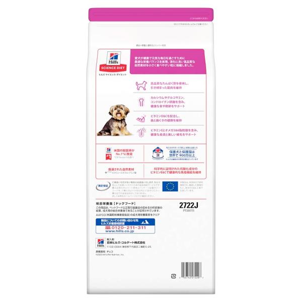 ◇◇ 【サイズ】高さ360×幅160×奥行125(mm) 【特長】 ヒルズが独自にブレンドした抗酸化成分で健康をサポートし、本来の免疫力を維持 【仕様】 ●1歳〜6歳までのトイプードル、チワワやミニチュアダックスフンドといった小型犬種に対応 ●オメガ3&〜6脂肪酸を配合し、健康な皮膚と美しく輝く被毛の維持をサポート ●カルシウムやグルコサミンを含み、健康な骨や関節を保持 ●サイズ:高さ360×幅160×奥行き125(mm) ●重量・質量:1530g ●内容量:1.5kg ●成分:トリ肉(チキン、ターキー)、トウモロコシ、小麦、米、動物性油脂、トリ肉エキス、植物性油脂、亜麻仁、ポークエキス、トマト、柑橘類、ホウレンソウ、ミネラル類(ナトリウム、カリウム、クロライド、銅、鉄、マンガン、セレン、亜鉛、ヨウ素)、乳酸、ビタミン類(A、B1、B2、B6、B12、C、D3、E、ベータカロテン、ナイアシン、パントテン酸、葉酸、ビオチン、コリン)、アミノ酸類(タウリン)、酸化防止剤(ミックストコフェロール、ローズマリー抽出物、緑茶抽出物)
