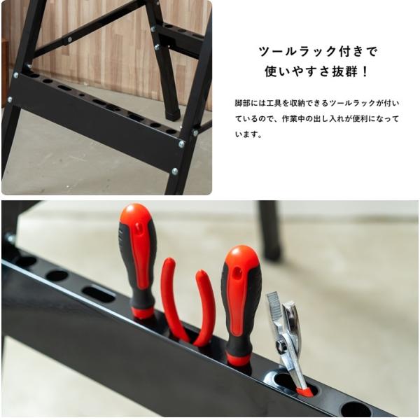 oDIY o工具 o作業台 oDIY女子 oDIY初心者におすすめ ◇◇ 【仕様】 ●使用時サイズ:(約)幅605×奥行620×高さ755mm ●収納時サイズ:(約)幅605×奥行145×高さ1050mm ●商品重量:5.5kg ●材質 脚部:スチール、MDF テーブル:木製 ●耐荷重:90kg ※お客様組み立て式+ドライバー別売り。 ※こちらの商品は仕様により脚部にくぼみがあります。
