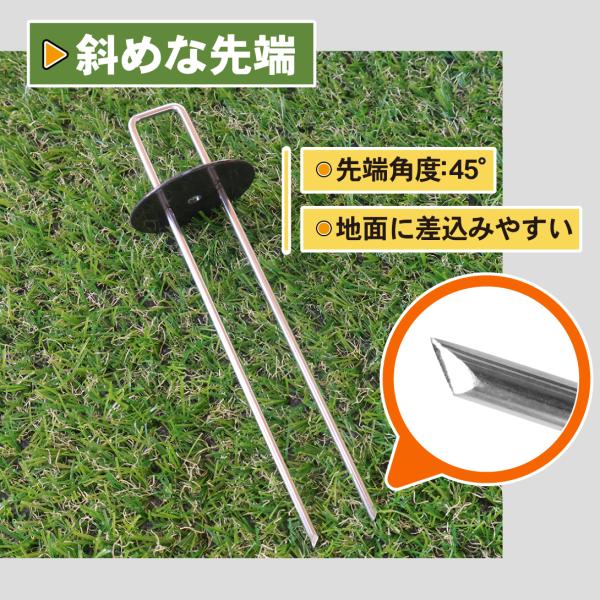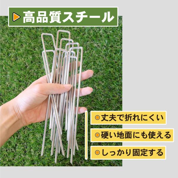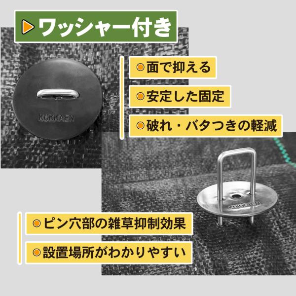 シート押さえ 防草シート ピン 亜鉛メッキシート押さえ ワッシャー付 100組 人工芝 押さえピン マルチ 黒丸付 U字ピン 杭 15cm コ型 国華園