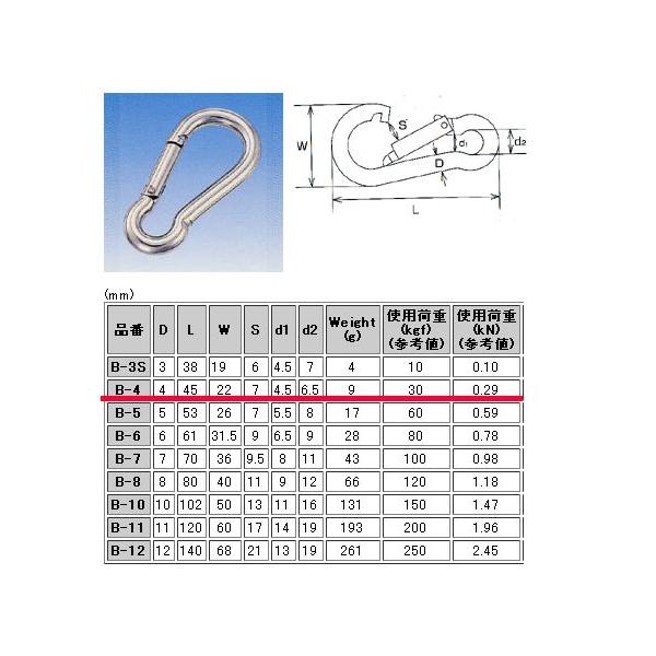 水本 スナップフック ステンレス B-4 B型 全長45mm