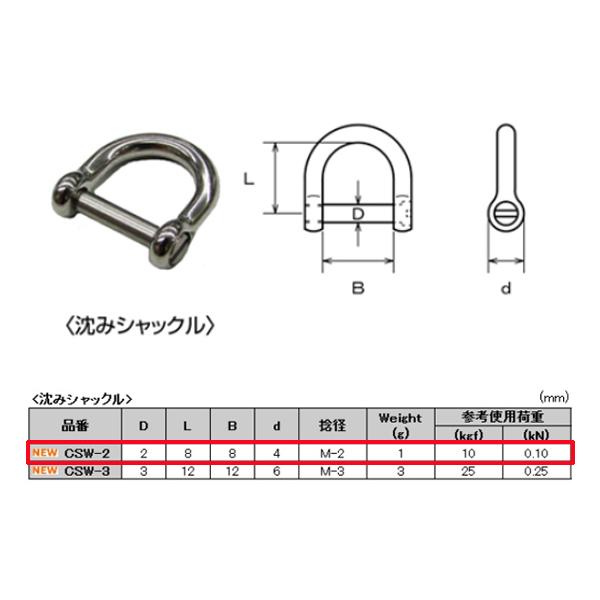 水本 マイクロワイドシャックル ステンレス 太さ2mm CSW-2 沈みシャックル