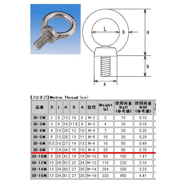 水本機械製作所 アイボルト M8 ステンレス IB-8M