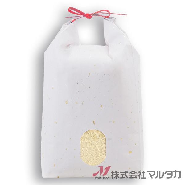 米袋 5kg用 無地 100枚セット KH-0911 雲龍和紙 金銀(赤紐) 窓あり