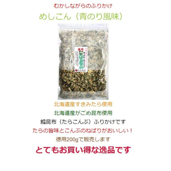 71002 メール便 めしこん 200g 青のり風味 北海道産がごめ昆布・すきみたら使用 鱈昆布(たらこんぶ)ふりかけ