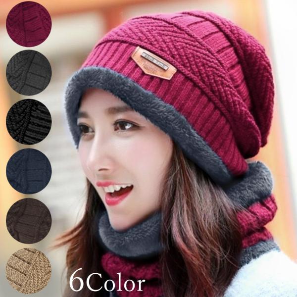 ニット帽 レディース 帽子 ネックウォーマー 2点セット 裏起毛 男女兼用 防寒 アウトドア 冬用