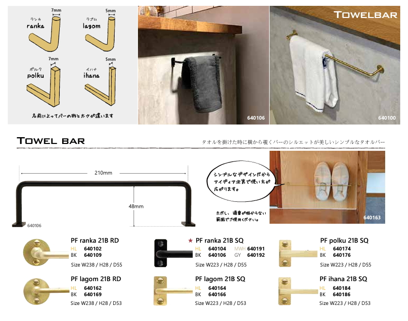 ■シリーズ:ranka(タオルバーの太さ:直径7mm)