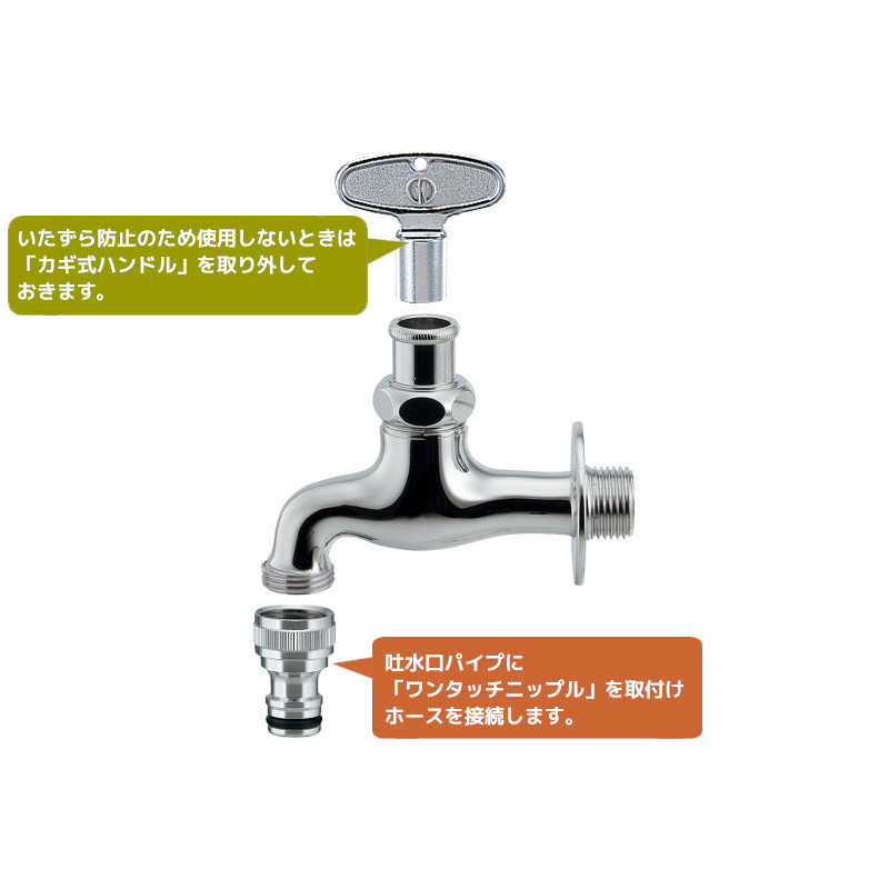 水栓 蛇口 かぎ付き かぎ式 鍵 交換 いたずら防止 共用栓 ホース 横水栓 ガーデン用水栓 屋外 ガーデニング