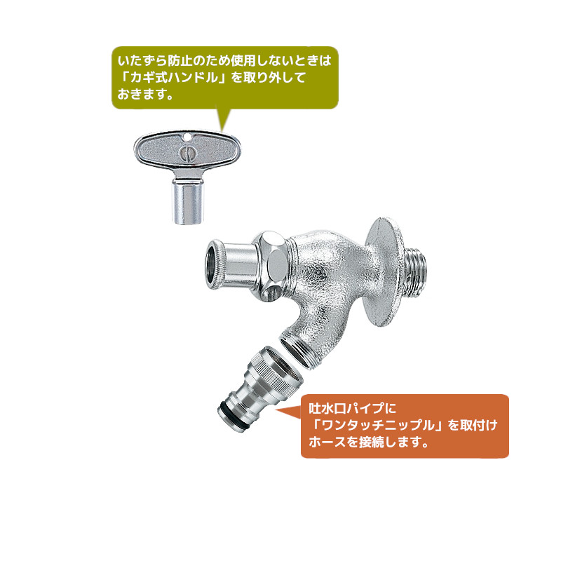 蛇口 水栓 いたずら防止 鍵 かぎ 横水栓 ガーデン用水栓 屋外