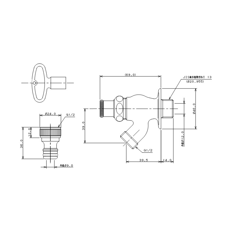 横水栓 いたずら防止 ホース 接続 ガーデン用水栓 蛇口 水栓 かぎ付き かぎ式 鍵 交換 ガーデニング 屋外