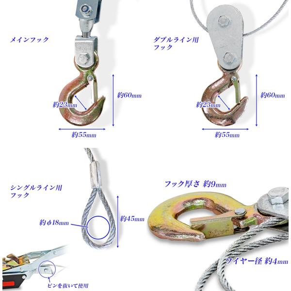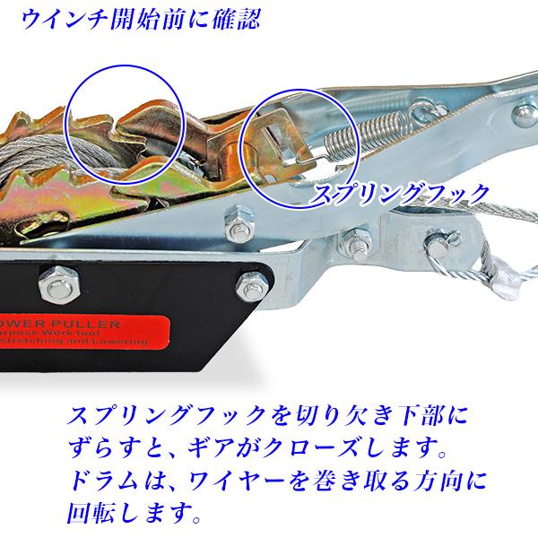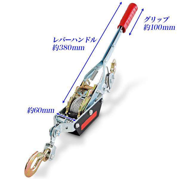 パワーウインチ ワイヤー式 ハンドワイヤーウインチ パワーウィンチ ワイヤーウインチ 最大荷重 2トン 2T 手動 牽引 引き上げ 災害時