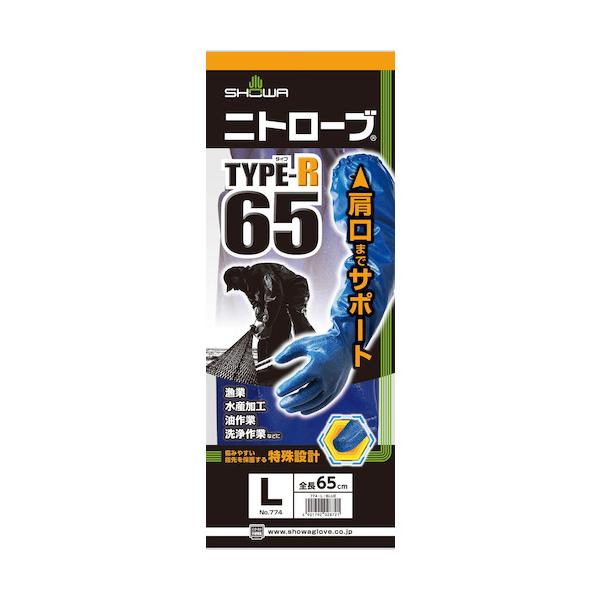 ショーワグローブ 腕カバー付手袋 No774ニトローブ TYPE-R65 ブルー Lサイズ (1双) NO774-L