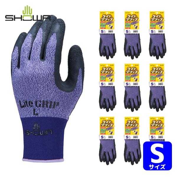 ショーワグローブ 天然ゴム背抜き手袋 まとめ買い NO341 ライトグリップ 10双入 Sサイズ パープル (1袋) NO341-SPL10P
