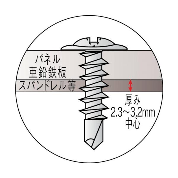 ・ナベ頭にワッシャーが一体化しているため広い頭部で部材を強力に押さえます。