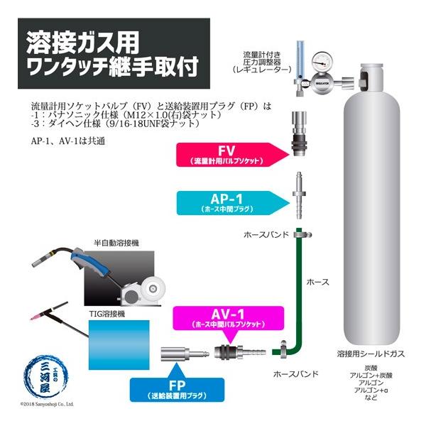 阪口 製作所 溶接ガス 用 溶接機側 カプラ サンロック AV-1 ( ダイヘン ・ パナソニック 兼用) ホース取付 ソケット