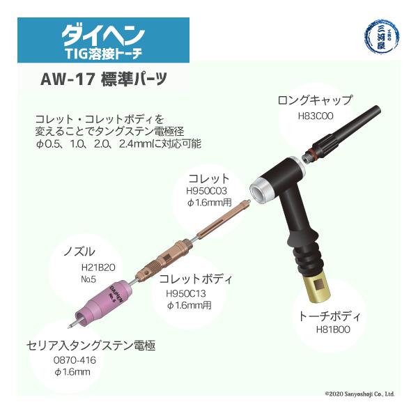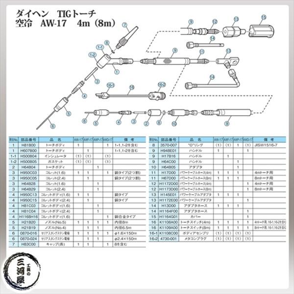 ダイヘン ( DAIHEN ) TIG 溶接 トーチ 150A空冷 AW-17(AW17) 8m