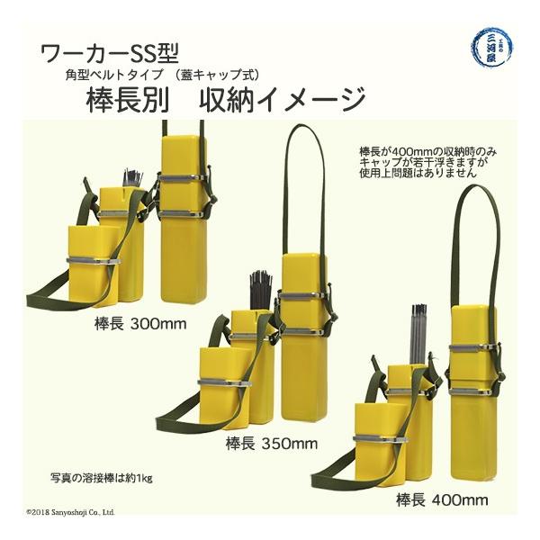 キャップタイプの収納ケースSM(L450~550mm)があります。このほか回転キャップタイプの溶接棒の長さ400mm用のY400や、450mm棒専用のY450などがあります。(色は黄色のみ)