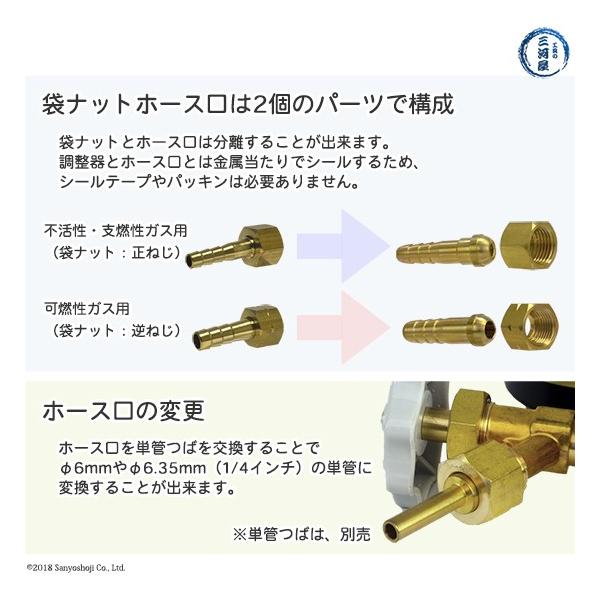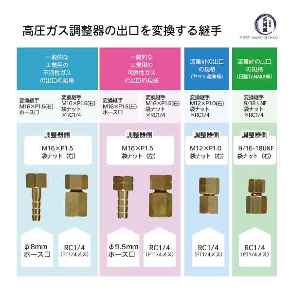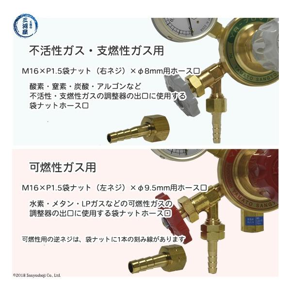 ※可燃性ガスは、M16×P1.5(逆ねじ)の袋ナットになり、可燃性ガス調整器には取り付けることが出来ません。