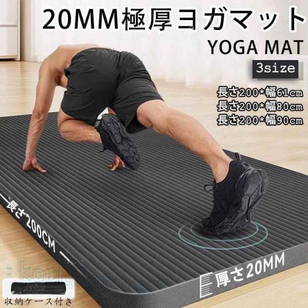 極厚 20mm 痛くない トレーニングマット 幅広61~90cm 長さ200cm 極厚 特大 高密度 筋トレマット ピラティス 収納バッグ付き ギフト 初心者