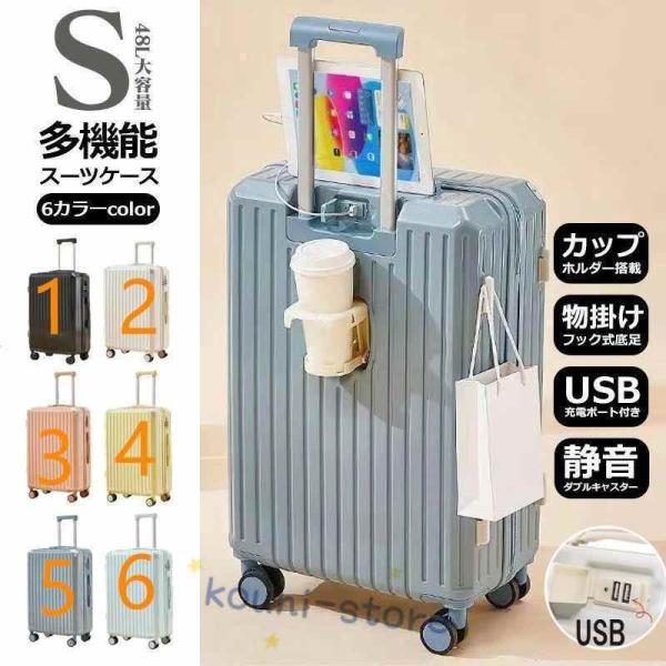 スーツケース 機内持ち込み 軽量 小型 キャリーケース Sサイズ カップホルダー 大容量 ファスナータイプ 静音 おしゃれ かわいい 2泊3日 短途旅行 48L