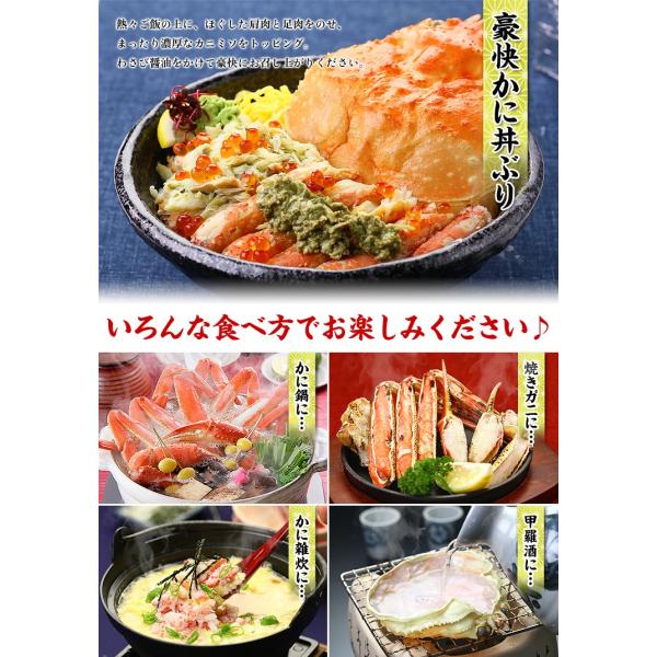 お召し上がり方:カニについているグレース(氷の膜)を流水で洗い流し、冷蔵庫の中で1日ほどかけてゆっくり自然解凍してください。
