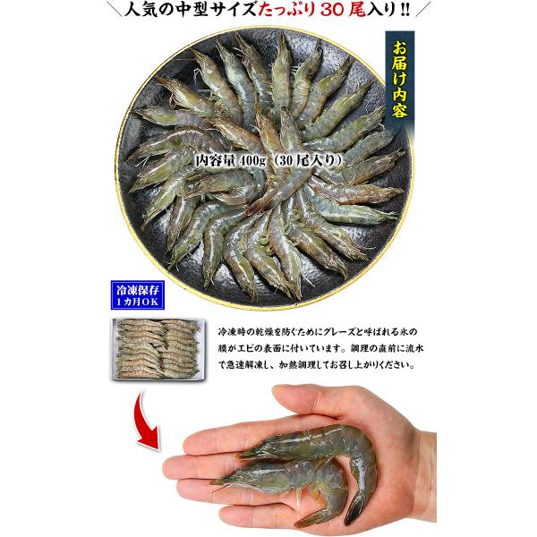 殻のまま丸ごと食べる新食感♪ソフトシェルシュリンプ(脱皮直後のバナメイエビ)人気の中型サイズ400g/30尾入り食べ放題! FF ポイント利用 爆買