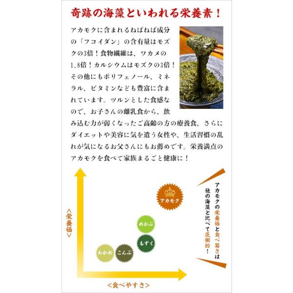 アカモクとは海藻の一種で地域によって、「ギバサ」(秋田)や「ギンバソウ」(山形)、「ナガモ」(新潟県)、「マツモ」(石川県)とも呼ばれています。長いものは2〜3ヶ月で7〜8mに達する、強い生命力を持った海藻です。古くから栄養価の高い海藻として重用され、日本では、大和時代から食されており、万葉集では「玉藻」と詠まれ、当時の「美」の代名詞でした。アカモクは、食物繊維やミネラル、ビタミンなど栄養満点で、健康成分たっぷりのスーパー海藻として、近年テレビなどでも注目されています。