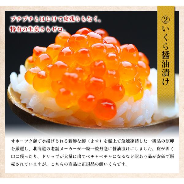 続いて2品目は、高品質な鱒いくらを原料に製造したこだわりのイクラ醤油漬け!いくら嫌いの人も虜になってしまうくらい美味しい極上品です。