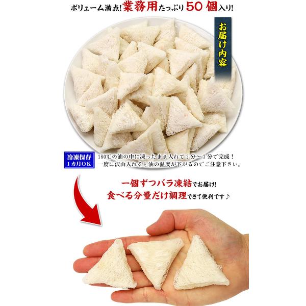 商品のポイント:ご好評の「海老餃子」の姉妹品「海老ネット包み揚げ」をご紹介!網状のライスぺーパーで、ゴロゴロのエビと魚のすり身を包み込んであります。調理は簡単!冷凍のまま180℃で2〜3分揚げるだけ♪最大の特徴は、米粉を使っているのでサクサク&パリパリ食感が絶妙!そして、中はゴロゴロのエビと魚のすり身が入っていて、とても食べやすい味付けとなっています。ボリューム満点たっぷり50個入りなので、お子様のおやすや酒の肴、お弁当にもお薦めです。