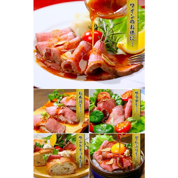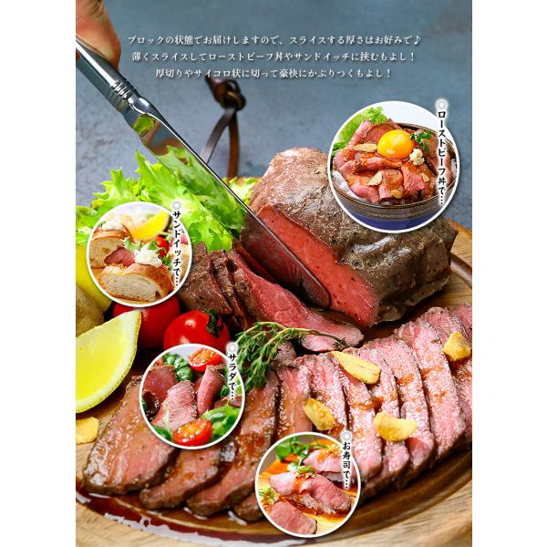 「噛むごとにお肉の旨みがたまりませんね!」「味にうるさい義母に購入しましたが、美味しい!美味しい!とペロリ。」「焼き具合、香ばしさ、柔らかさ、タレ。すべておいしかったです!」…などなど、絶賛のお声が続々の黒毛和牛ローストビーフをご紹介します!赤身と脂身のバランスが良い国産黒毛和牛の内モモ肉を厳選し、FSSC22000を取得した安心安全な国内工場で製造いたしました!こだわりのスパイスで下味を付け、オリジナル製法でじっくり丁寧に炊き上げた逸品です。低温調理ならではのしっとりとした食感とロゼ色が絶品!約200gのブロック×2個でお届けしますので、スライスする厚さはお好みで♪薄くスライスしてローストビーフ丼やサンドイッチに挟むもよし!思い切って厚切りやサイコロ状に切って豪快にかぶりつくもよし!専用ソース&西洋わさび付きでお届けしますので、大切なギフトにもお薦めです。
