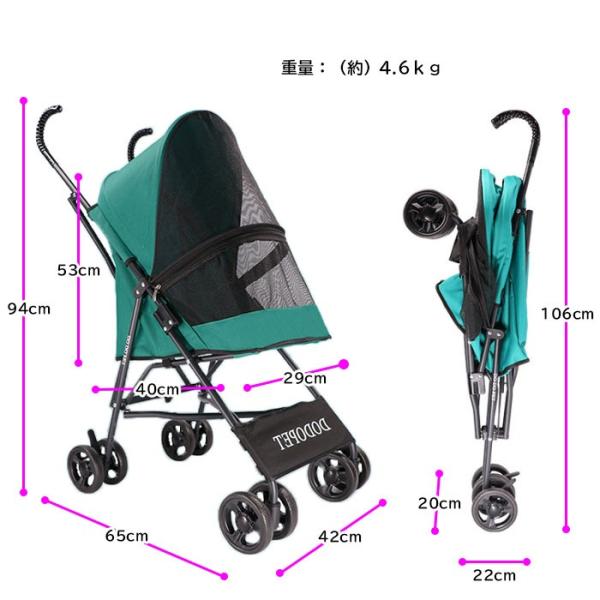 安定した4輪タイプで乗り心地の良くワンちゃんも安心です。