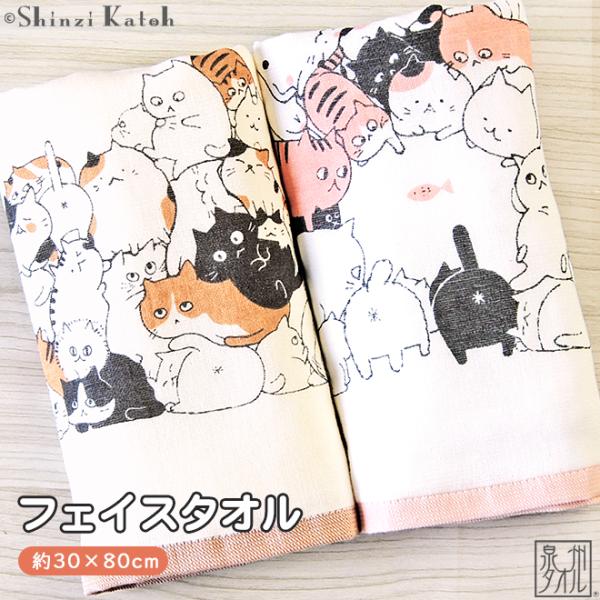 フェイスタオル プレゼント レディース 猫 ねこ 小物 日本製 綿100% Shinzi katoh ねこねこね 約30×80cm ガーゼ 無撚糸 シンジカトウ 泉州タオル 優