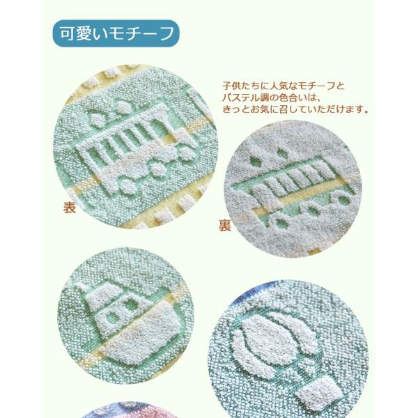 ハンドタオル ループ付き タオル 子供 保育園 日本製 ギフト プレゼント 乗り物 車 動物 おしぼりタオル スモールワールド 約34×38cm ジャガード 優