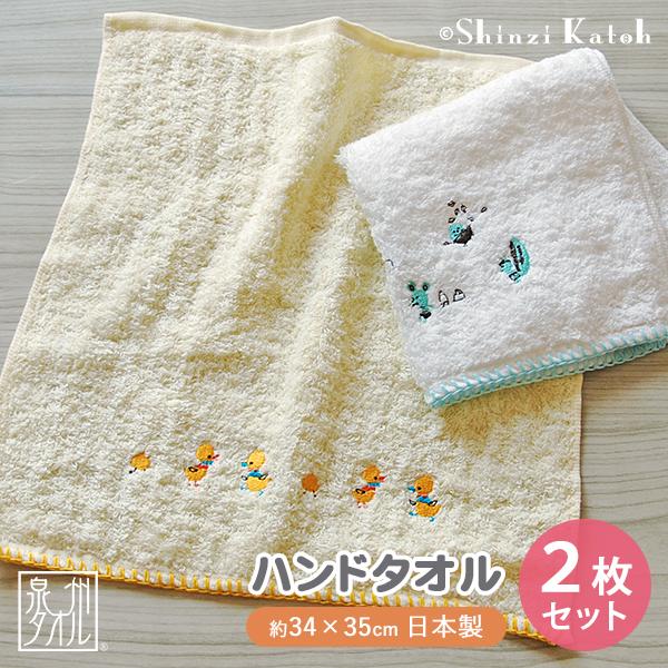 アウトレット価格 ハンドタオル 2枚セット 送料無料 綿100% 子供 日本製 保育園 ベビー 動物柄 Shinzi Katoh クレエ 約34×35cm おてふき アウトレット 優