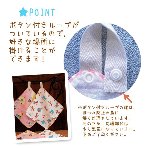 スクールバッグ や キッチン に! ループ付き 日本製 ガーゼ ハンドタオル
