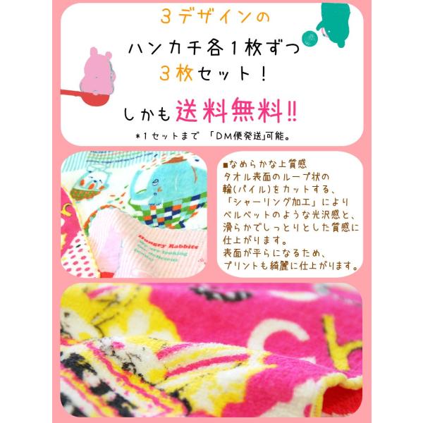 ぞう リス うさぎ のポップな タオルハンカチ 3枚 セット【送料無料】