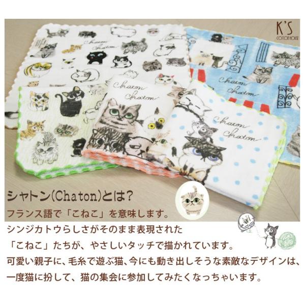 タオルハンカチ プレゼント ねこ 猫 ネコ雑貨 猫グッズ 女性 日本製 Shinzi Katoh シャトン 約23×23cm ガーゼ 無撚糸 カトウシンジ ブランド 泉州タオル 優