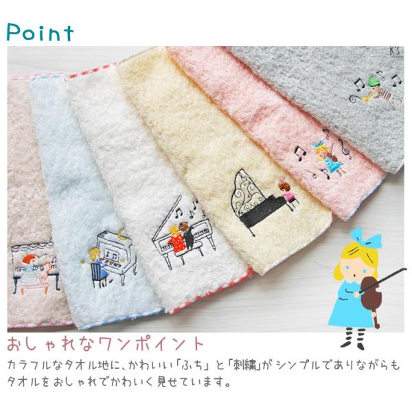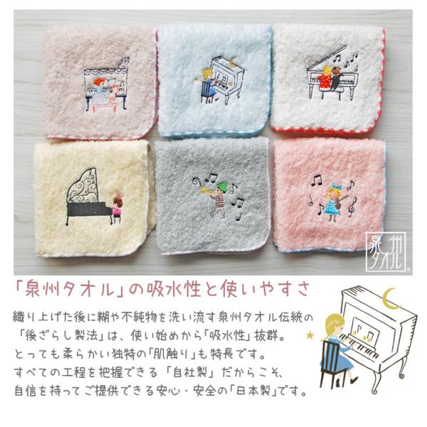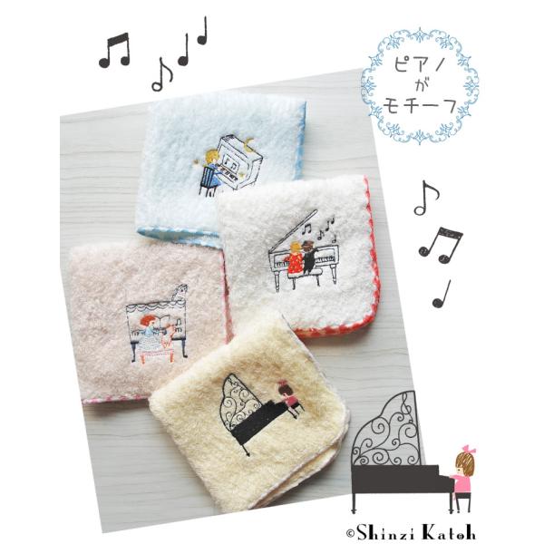 ハンカチ レディース 女の子 男の子 ピアノ 音楽 楽器 発表会 刺繍 プレゼント 日本製 泉州タオル Shinzi katoh ポワポワチック ミュージック 約23×23cm 優
