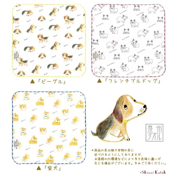 タオルハンカチ プレゼント 柴犬 ビーグル フレンチ ブルドッグ 犬 グッズ 雑貨 日本製 Shinzi katoh 犬のさんぽ 約23×23cm ガーゼ 泉州タオル 優